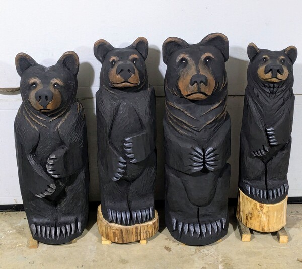 Daniel Desruisseaux réalise des sculptures d'ours à la scie à chaîne, avec une finition minutieuse faite à la main au couteau. Installé au Domaine des Appalaches depuis 1988, il met en valeur son savoir-faire à travers des oeuvres uniques inspirées de la nature.
